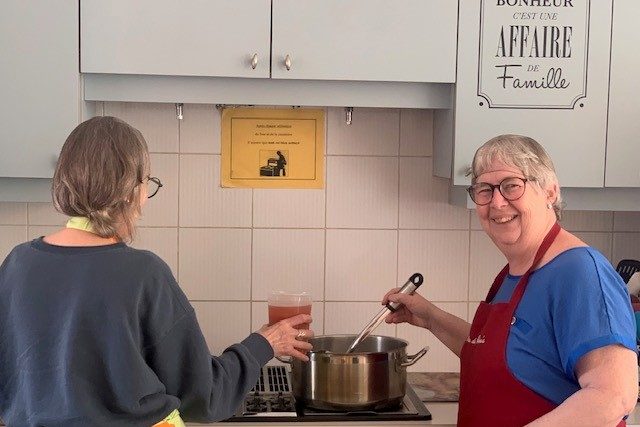 Cuisiner en groupe s’avère une bonne manière d’économiser, d’acquérir de nouvelles habiletés et de rencontrer d’autres jeunes parents. Deux bénévoles dédiées à la cuisine accueillent un groupe de parents. Nous nous occupons du choix des recettes et des achats, facilitant ainsi la venue des participants. Pendant que les parents préparent un plat avec l’aide des cuisinières de la MGPV, les bébés sont à la halte-garderie sous les bons soins des bénévoles. Nous proposons des produits de saison, des recettes savoureuses à petits prix.